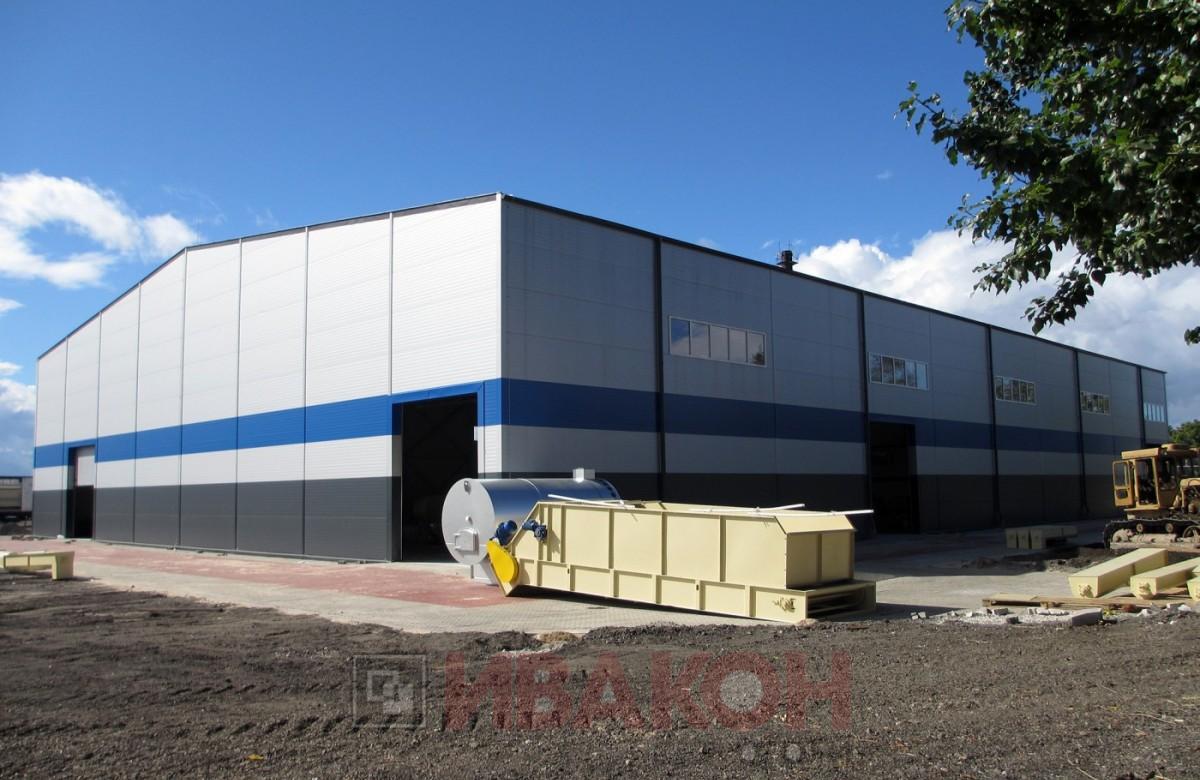 • Кровля: двускатная: стропильные фермы, внешнее и внутреннее покрытие из профилированного стального оцинкованного листа Н-44-0.7, утепление - минеральная вата 200мм.